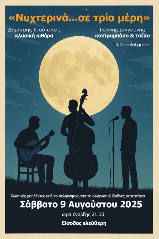 3ο μέρος: Κιθάρα, Τσέλο/Κοντραμπάσο & Φωνή, κλασικές μπαλάντες υπό το σεληνόφως από το ελληνικό & διεθνές ρεπερτόριο.