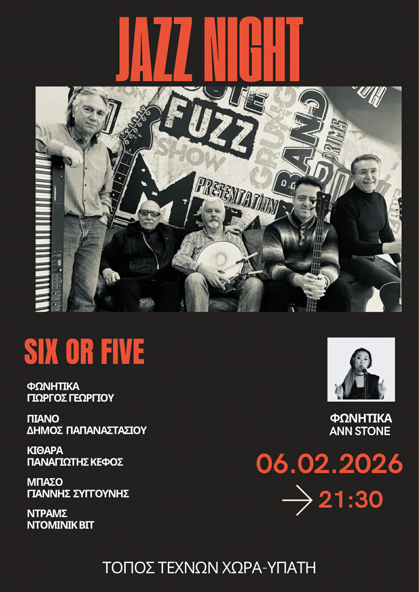 Το συγκρότημα Six or Five ανεβαίνει στη σκηνή για μια Jazz βραδιά με αγαπημένες μελωδίες και αυτοσχεδιασμούς.