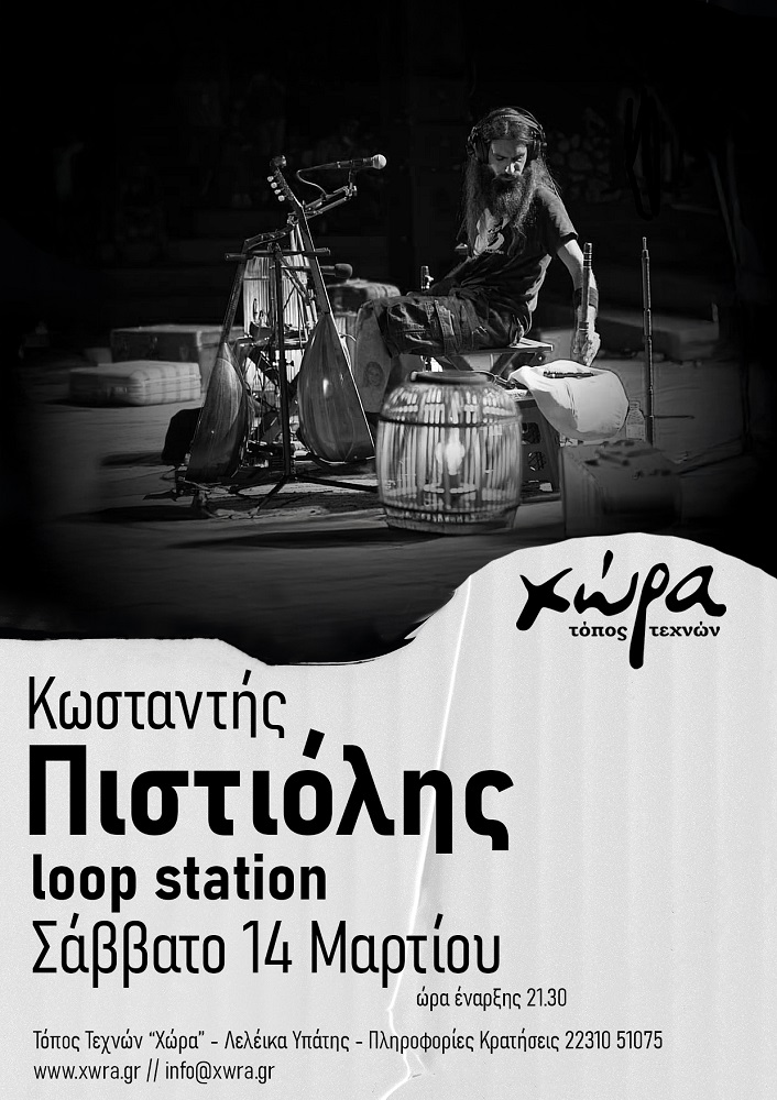 Ο Κωσταντής Πιστιόλης έρχεται στον Τόπο Τεχνών “Χώρα”, στα Λελέικα Υπάτης, για να μας παρουσιάσει ένα ιδιαίτερο μουσικό πρόγραμμα, όπου η παράδοση συναντά τη σύγχρονη έκφραση μέσω της λουπας (loop station).