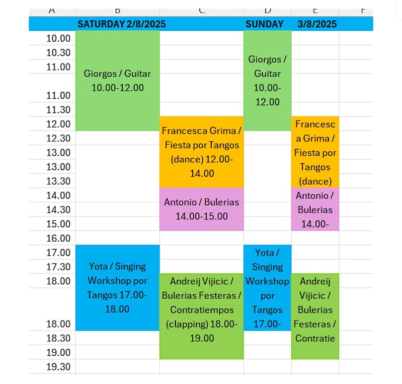 Ένα ομαδικό εργαστήρι που συνδυάζει κίνηση, ρυθμό και έκφραση σε μια χαρούμενη και κοινοτική ατμόσφαιρα. Ιδανικό για όσους θέλουν να απελευθερωθούν, να διασκεδάσουν και να γνωρίσουν σε βάθος την κουλτούρα του flamenco μέσα από την καρδιά της γιορτής.